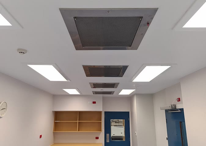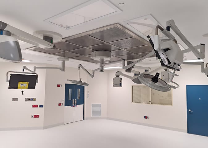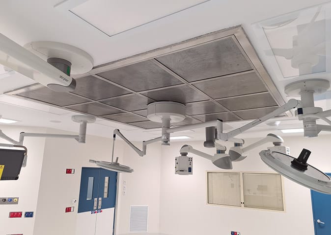 Installation works included the installation of new HEPA filtration and thermo fusers, the modification of the Laminar flow hood ductwork to allow for the installation of theatre pendants, all certification, validation and resetting of required pressure gradients.